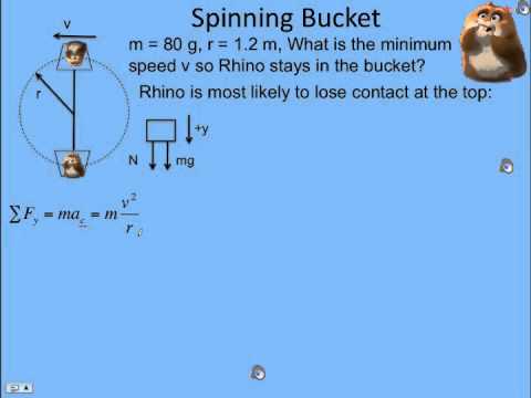 Whirling a bucket A bucket of water is whirled around in a vertical circle with radius 1m. For rotating the bucket of water along a vertical circle it requires a centripetal force mv2R where m is the mass of water and R the radius of the circular path. If playback doesnt begin shortly try restarting your device.