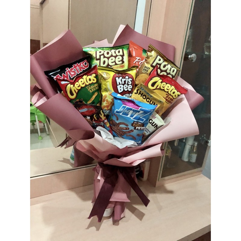Snack Bouquet Kado Ultah Anak Cowok Cewek Lucu Unik Coklat Chips Keripik Shopee Indonesia